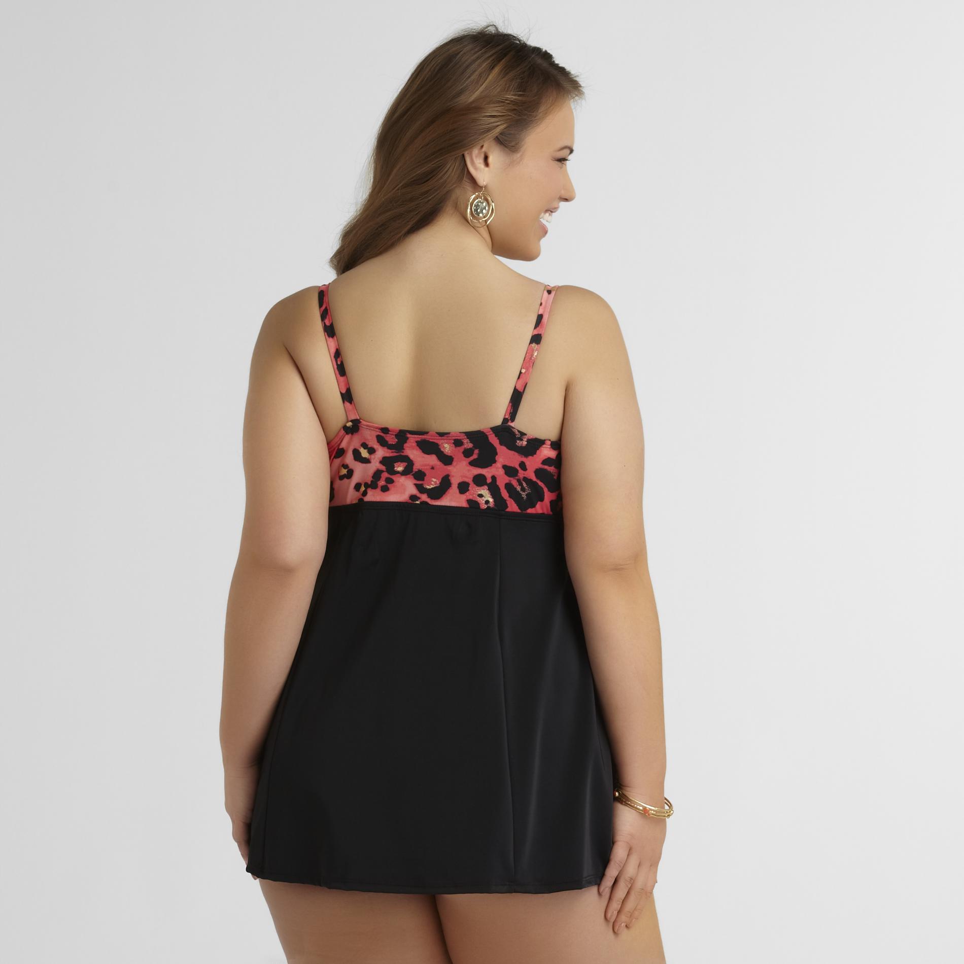 A sexy tied bust gives this women's plus swimsuit from Jaclyn Smith a unique summer flair. This one-piece also features tiny details on the straps and a bold animal print.