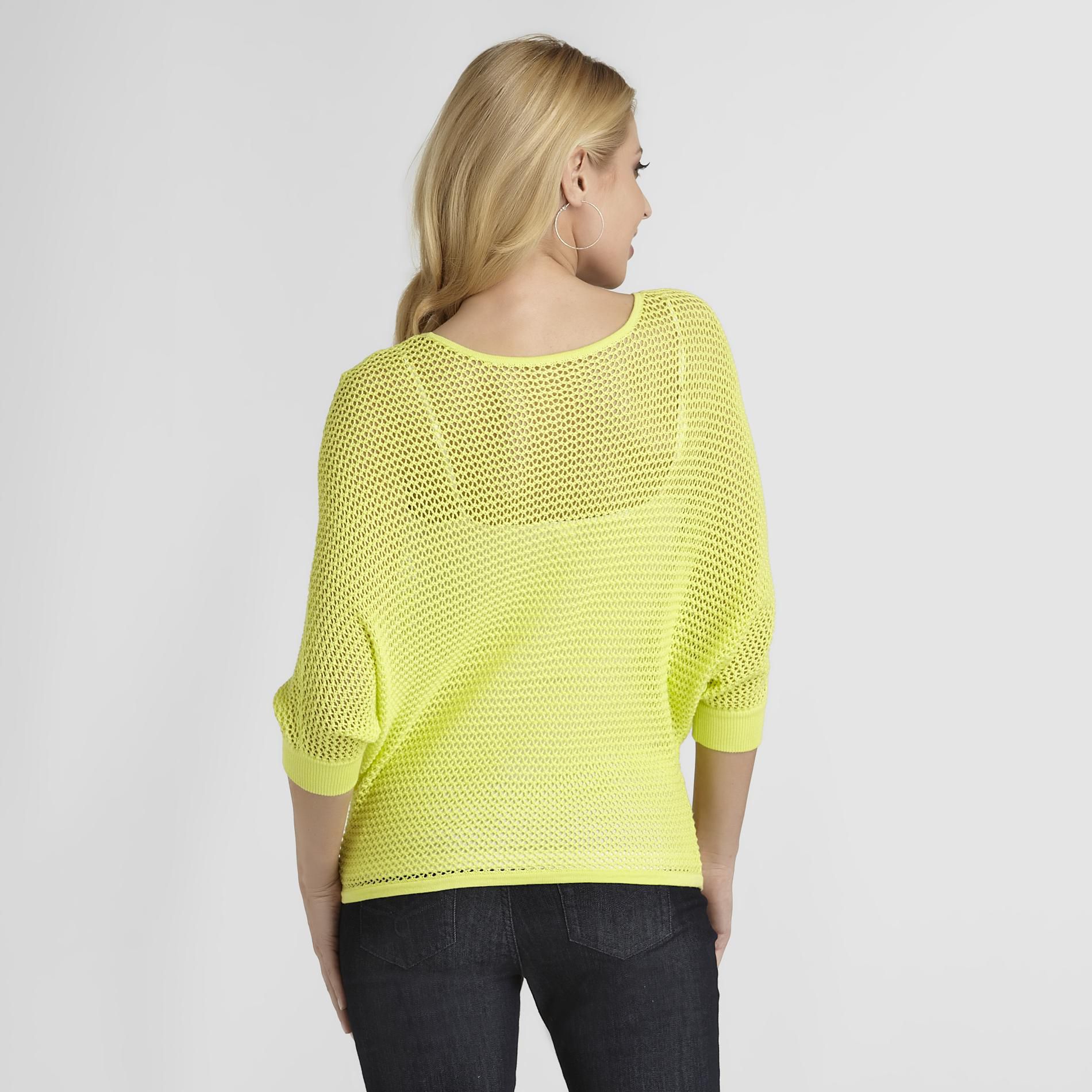 Net a sexy notion of see-through style with this women's open knit sweater from Sofia by Sofia Vergara. This light and airy layer features loose-fitting dolman sleeves and soft ribbed trim for a summery look that sizzles when you pair with a stretchy tank top or strappy cami.