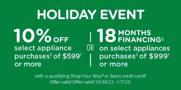 10% OFF ON SELECT HOME APPLIANCE PURCHASES◊ OF $599† or more WITH A QUALIFYING SHOP YOUR WAY OR SEARS CREDIT CARD‡